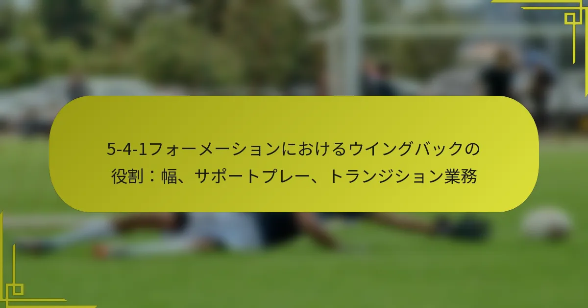 5-4-1サッカーフォーメーションでは、選手は守備の安定性と攻撃の機会に貢献する特定の役割を持っています。このセットアップは通常、5人のディフェンダー、4人のミッドフィルダー、1人のフォワードを含み、各選手にはチームのパフォーマンスを向上させるための明確な責任があります。