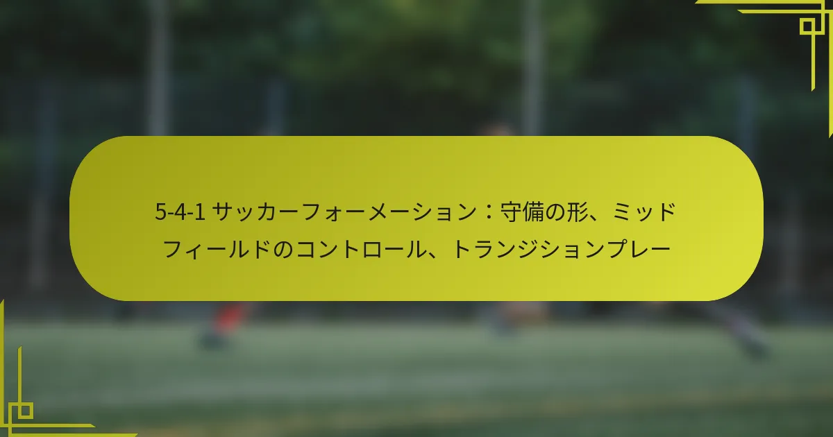 5-4-1サッカーフォーメーションは、守備の堅実さを強調しつつ、カウンターアタックの機会を提供します。主要な戦術調整は、選手のポジショニング、中盤のダイナミクス、相手の弱点を突くことに焦点を当てています。