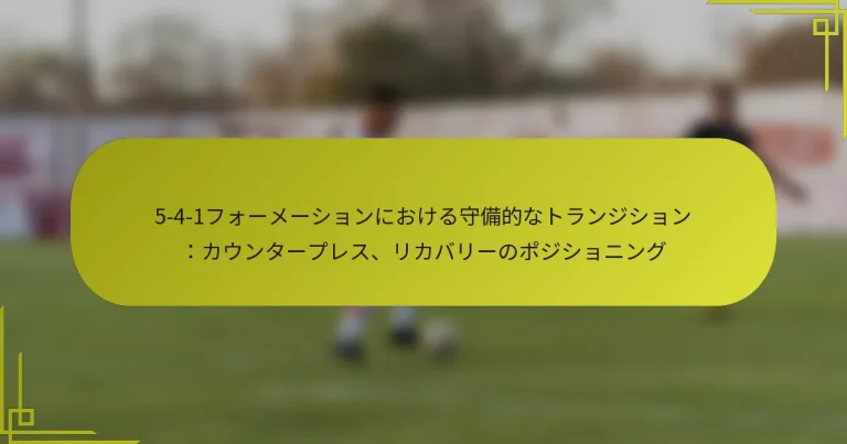 5-4-1フォーメーションは、サッカーにおける戦略的な守備配置であり、コンパクトさと組織を重視し、5人のディフェンダー、4人のミッドフィールダー、1人のフォワードで構成されています。このフォーメーションは、選手間のスペースを最小限に抑えることで守備の安定性を高め、相手が侵入するのを困難にします。さらに、チームが強固な守備の形を維持しつつ、迅速なカウンターアタックに備えることを可能にします。 サッカーにおける5-4-1フォーメーションとは? 5-4-1フォーメーションは、5人のディフェンダー、4人のミッドフィールダー、1人のフォワードを特徴とする守備的なサッカーの配置です。この構造は、コンパクトさと組織を強調し、チームが強固な守備の形を維持しながら迅速なカウンターアタックに備えることを可能にします。 5-4-1フォーメーションの定義と歴史的背景 5-4-1フォーメーションは、チームが守備能力を向上させようとする中で進化してきました。元々は20世紀後半に普及し、現代サッカーにおける守備の堅実さの重要性が認識されるにつれて広まりました。この構造は、堅牢な守備ラインを提供しつつ、ミッドフィールダーのコントロールの選択肢も提供します。 歴史的に、このフォーメーションは重要なトーナメントで様々なチームによって利用され、特に強力な相手に対して効果を発揮しました。その適応性は、攻撃的な側に対して結果を確保しようとするチームにとって好まれる選択肢となっています。 5-4-1フォーメーションの主要な要素 5人のディフェンダー:通常、3人のセンターバックと2人のウイングバックで構成されます。 4人のミッドフィールダー:しばしばフラットまたはダイヤモンドの形に配置され、守備と攻撃の両方をサポートします。 1人のフォワード:カウンターアタックの機会を活かすために配置されます。 コンパクトさ:フォーメーションは狭い形を維持し、相手にスペースを制限します。 柔軟性:選手は必要に応じて守備と攻撃の役割を切り替えることができます。 5-4-1フォーメーションにおける選手の役割 5-4-1フォーメーションでは、5人のディフェンダーが堅固なバックラインを維持するために重要です。3人のセンターバックは攻撃を阻止し、空中戦を制することに集中し、ウイングバックは守備と攻撃の両方で幅を提供します。 4人のミッドフィールダーは、守備と攻撃をつなぐ重要な役割を果たします。彼らはミッドフィールドをコントロールし、相手のプレーを破壊し、孤立したフォワードをサポートする責任があります。彼らのポジショニングは、チームの形を維持し、守備の安定性を確保するために不可欠です。 孤立したフォワードは、ボールを保持し、カウンターアタックの際に得点機会を創出する役割を担っています。この選手は敏捷性が求められ、相手の守備の隙を突くために迅速な判断を下す必要があります。 5-4-1フォーメーションの一般的な戦術的目的 5-4-1フォーメーションの主な戦術的目的は、相手が侵入するのが難しい強固な守備ユニットを作ることです。コンパクトな形を維持することで、チームは攻撃者に利用可能なスペースを効果的に制限し、彼らを不利な位置に追い込むことができます。 もう一つの目的は、守備から攻撃への迅速な移行を促進することです。このフォーメーションは、ウイングバックとフォワードのスピードを活かして、相手チームが残した隙を突く迅速なカウンターアタックを可能にします。この戦略は、高品質な得点機会を生むことができます。 さらに、5-4-1フォーメーションはミッドフィールドの戦いを制御することを目指しています。4人のミッドフィールダーを配置することで、チームはボールの保持を支配し、試合のペースをコントロールし、相手がリズムを確立するのを困難にします。 他のフォーメーションとの比較 フォーメーション 守備力 攻撃の柔軟性 ミッドフィールドのコントロール 5-4-1 高い 中程度 強い 4-4-2 中程度 高い 中程度 3-5-2 中程度 高い 強い 4-4-2や3-5-2のようなフォーメーションと比較すると、5-4-1は優れた守備力を提供しますが、攻撃の柔軟性に欠ける場合があります。5-4-1を使用するチームは、守備の堅実さを優先することが多く、ポイントを確保することが重要な試合に最適です。 5-4-1フォーメーションにおけるコンパクトさの機能 5-4-1フォーメーションにおけるコンパクトさは、選手間のスペースを最小限に抑えた、タイトで組織的な構造を維持するチームの能力を指します。このアプローチは守備の安定性を高め、相手が侵入したり得点機会を創出したりするのを困難にします。…