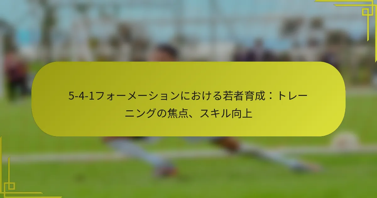 ユースサッカーにおける5-4-1フォーメーションは、守備の強さを優先しつつ、迅速なカウンターアタックを可能にする戦略的アプローチです。チームワークと個々のスキルの発展を促進することで、このフォーメーションは若い選手が戦術的理解とフィールドでの全体的なパフォーマンスを向上させるための効果的な枠組みとなります。